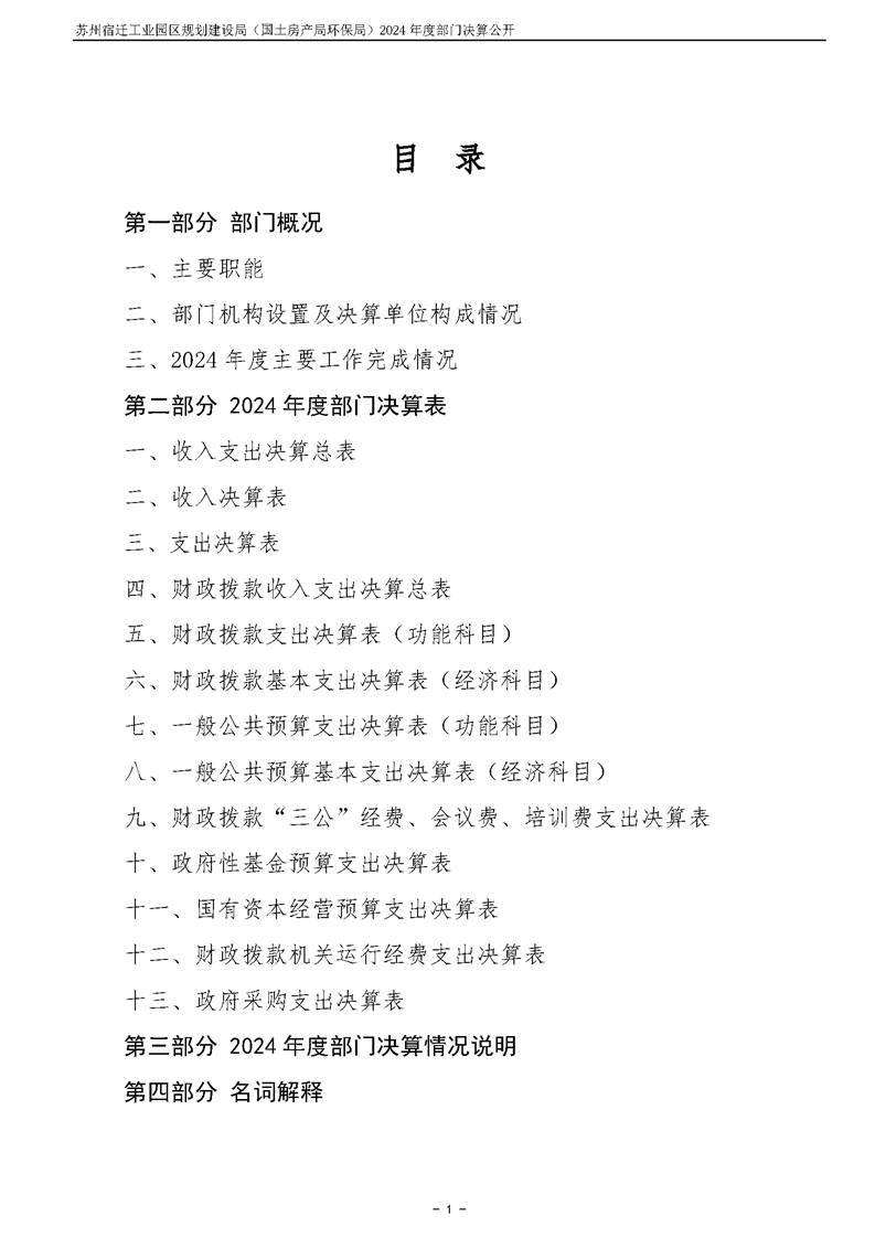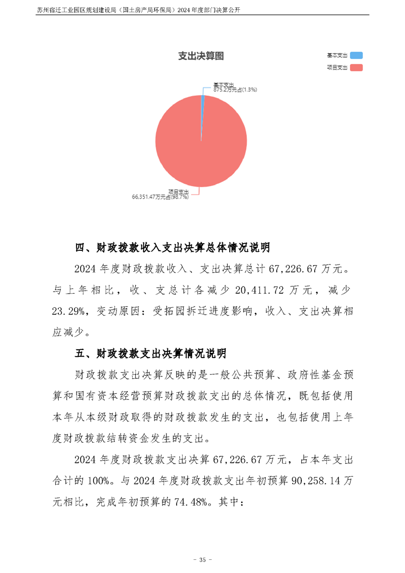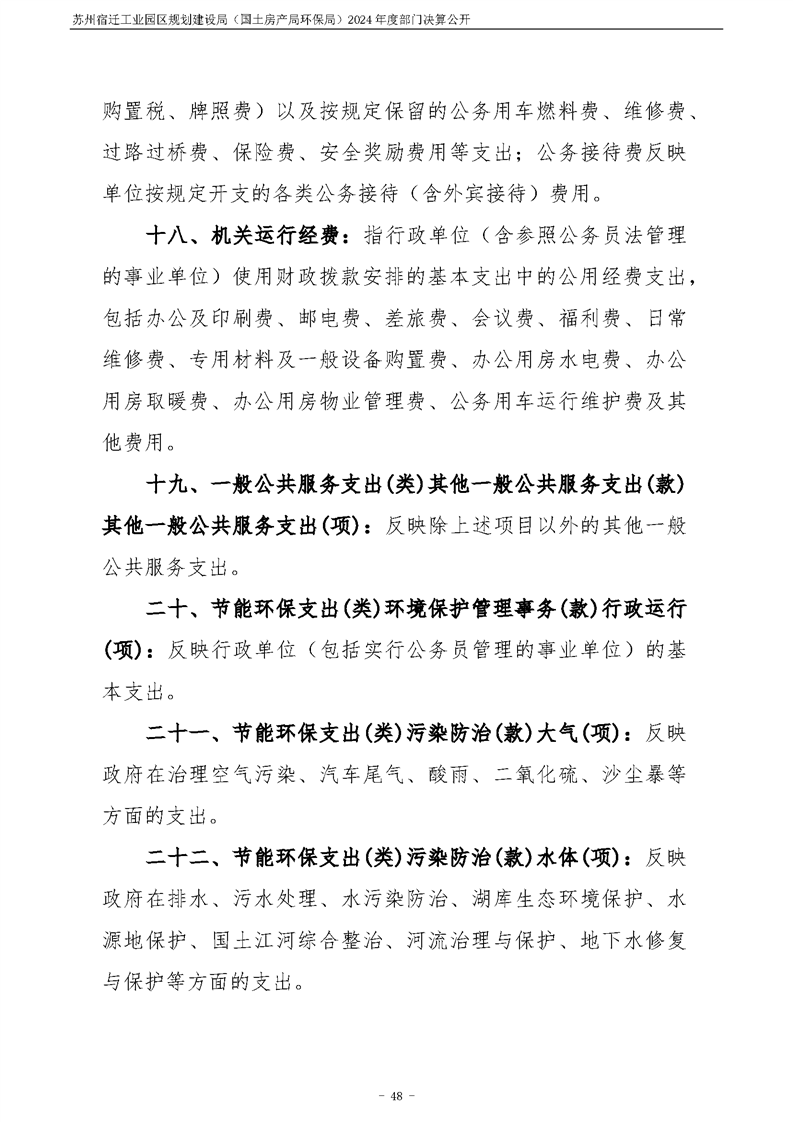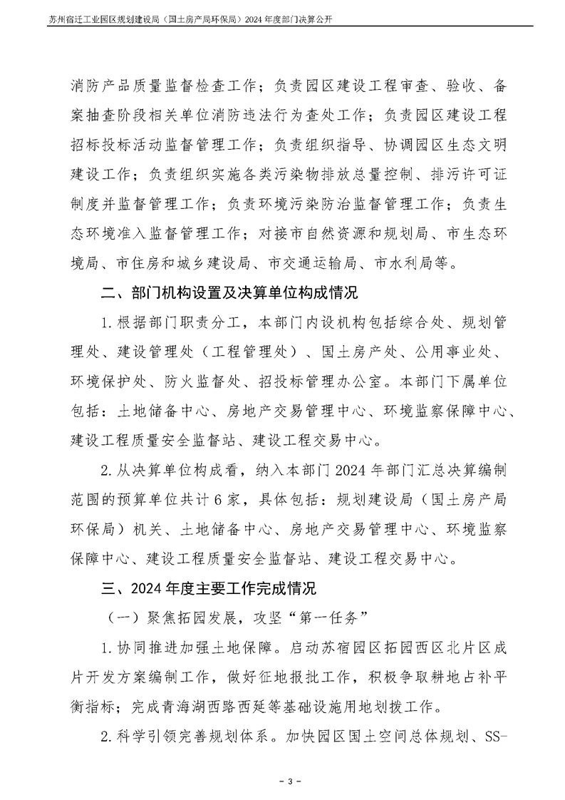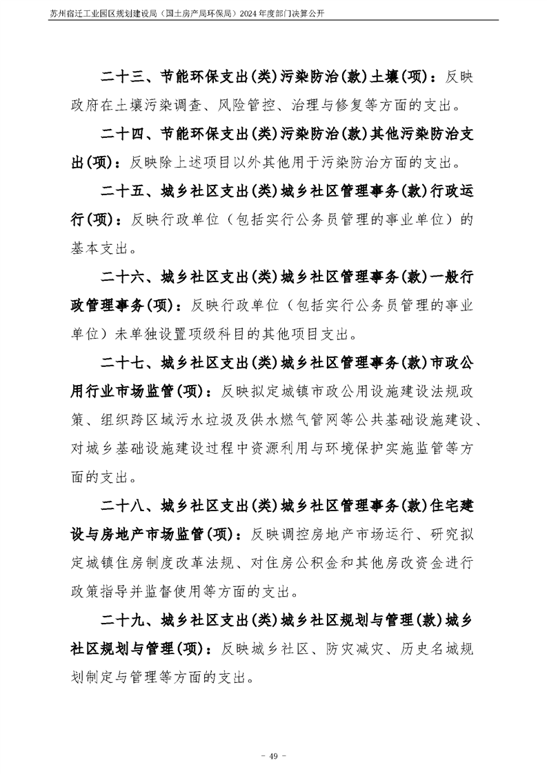 2024年度苏州宿迁工业园区规划建设局(国土房产局环保局)部门决算公开