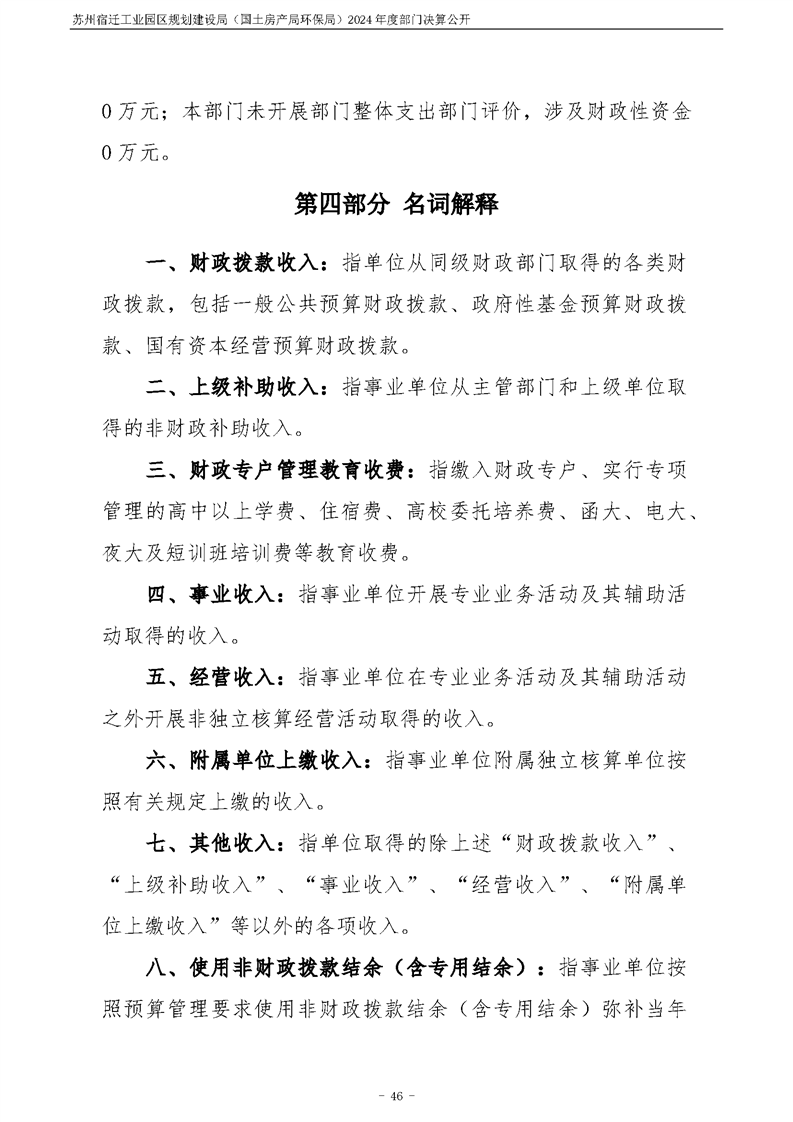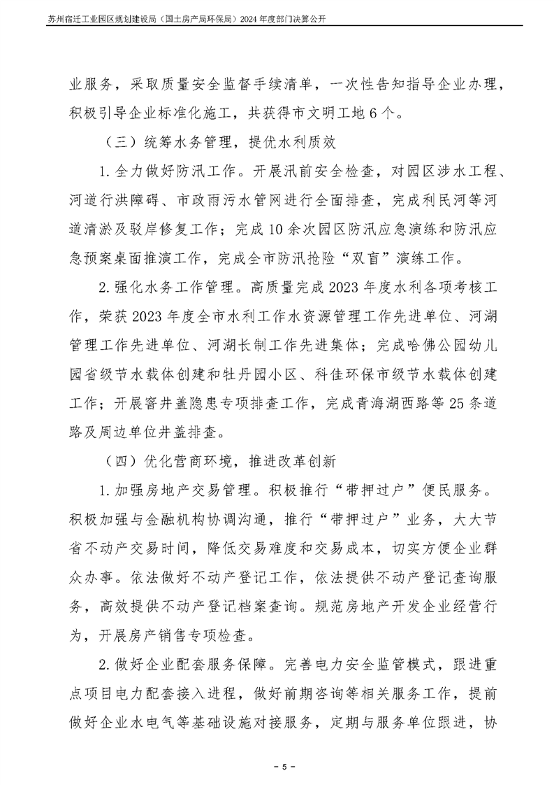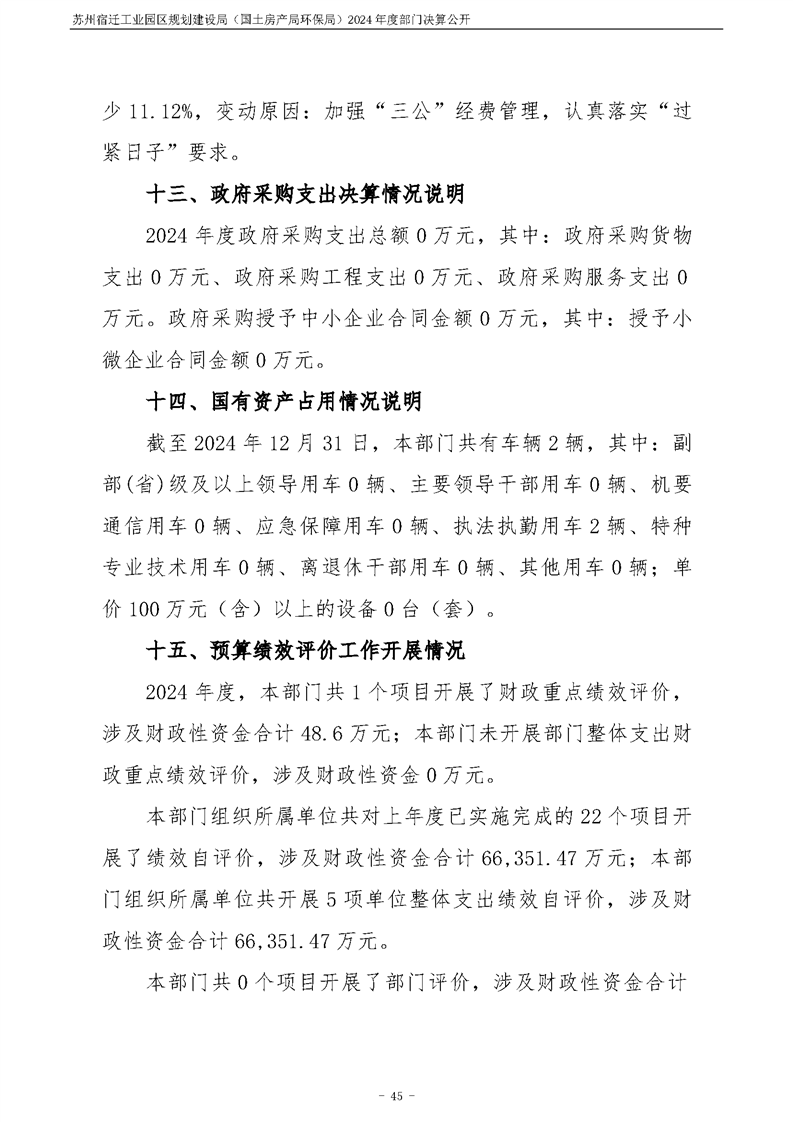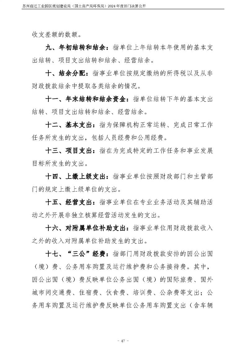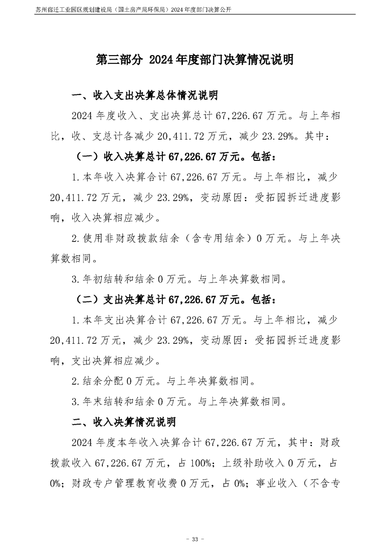 2024年度苏州宿迁工业园区规划建设局(国土房产局环保局)部门决算公开