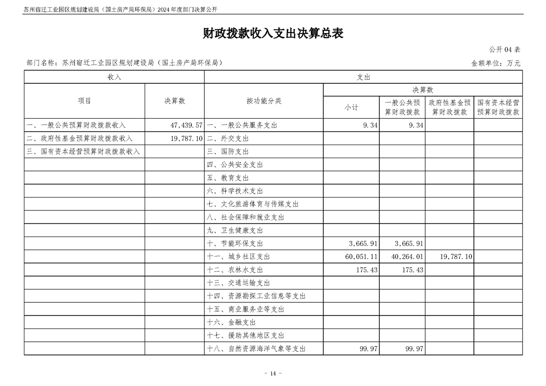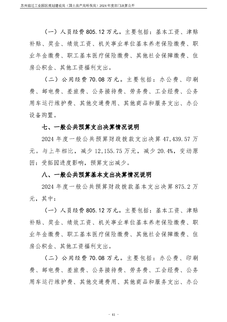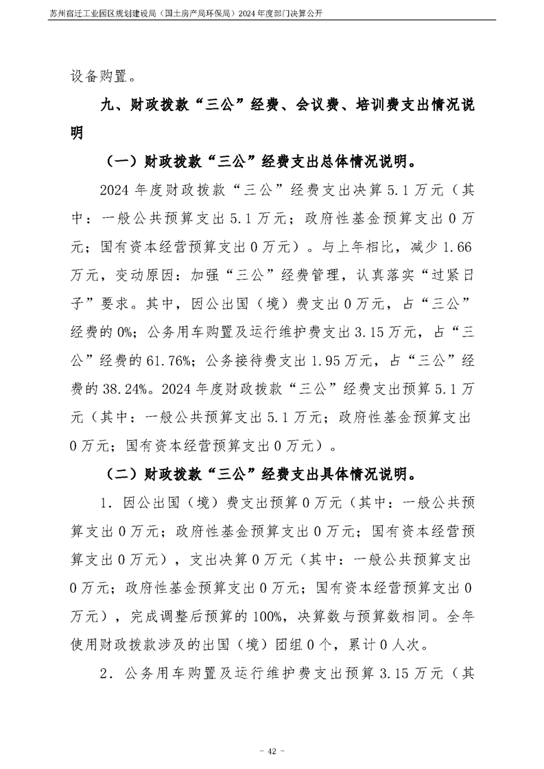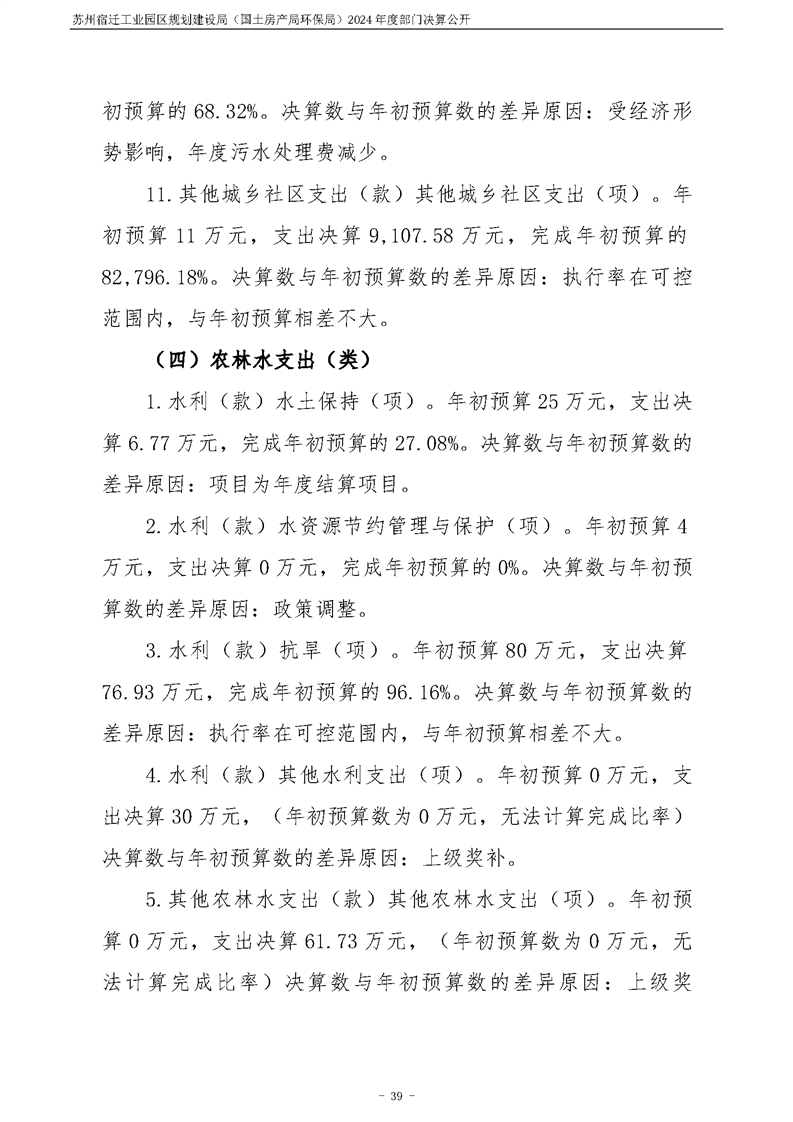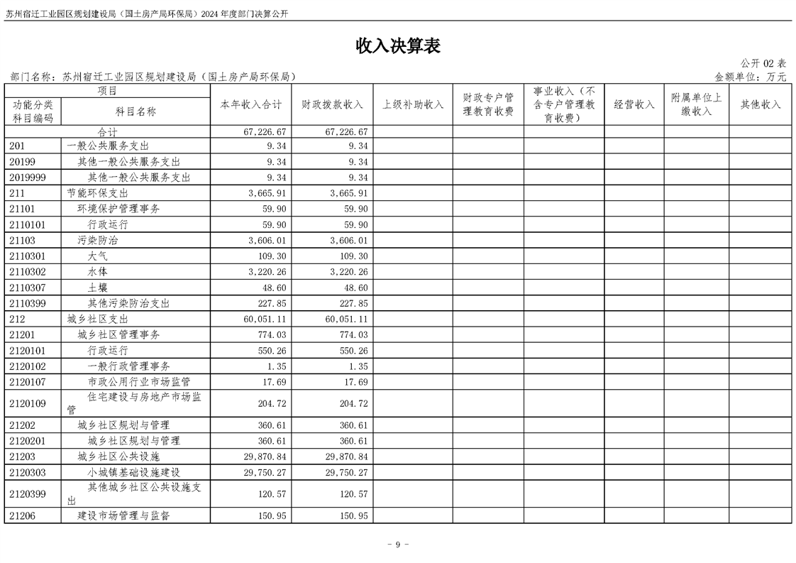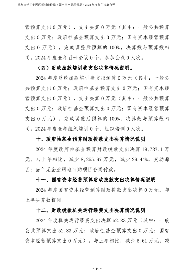 2024年度苏州宿迁工业园区规划建设局(国土房产局环保局)部门决算公开