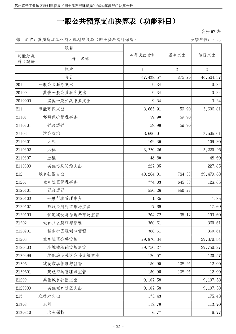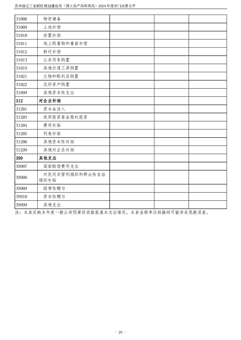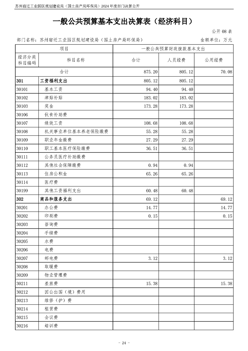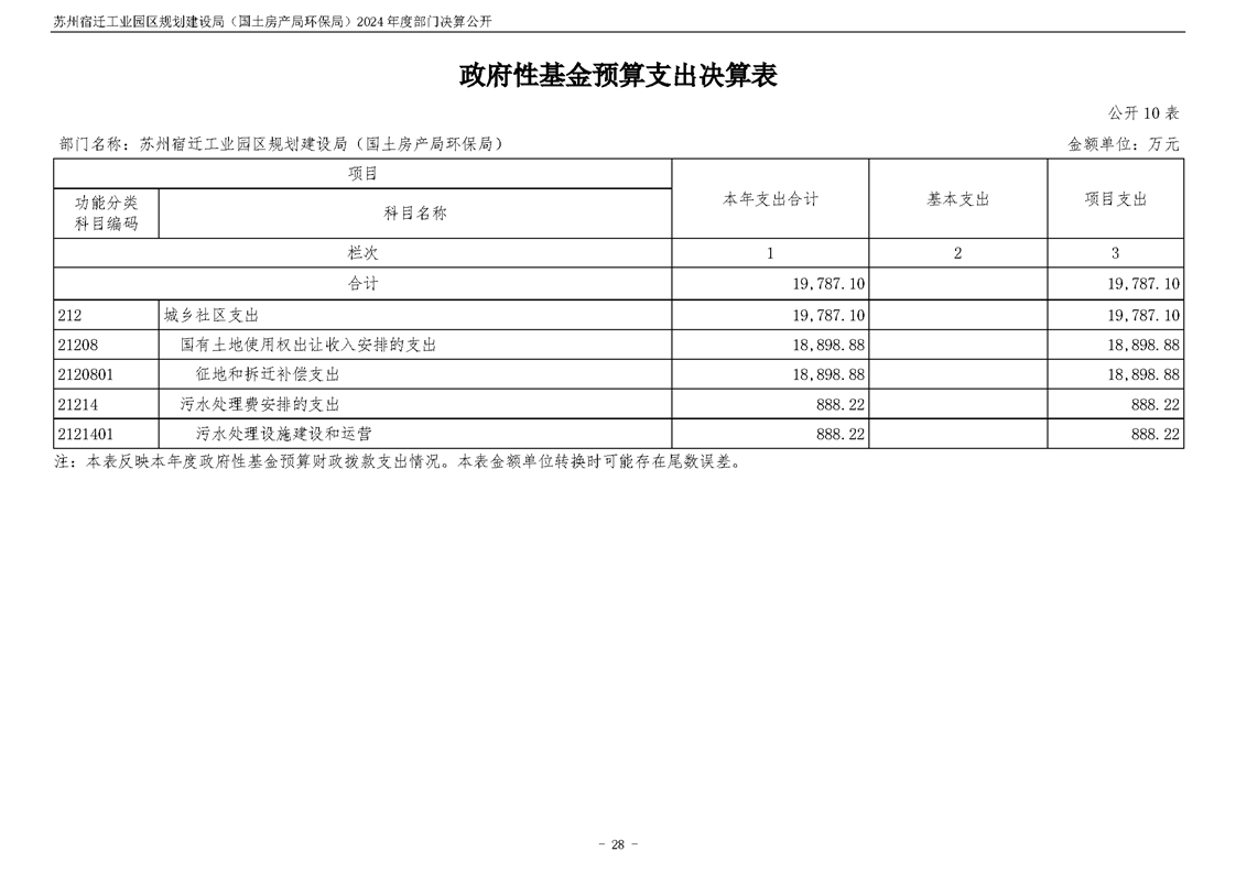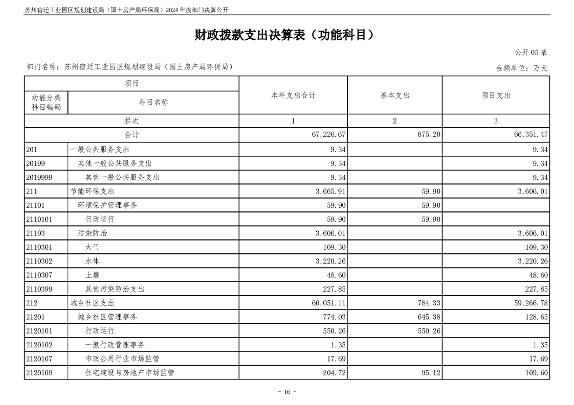 2024年度苏州宿迁工业园区规划建设局(国土房产局环保局)部门决算公开