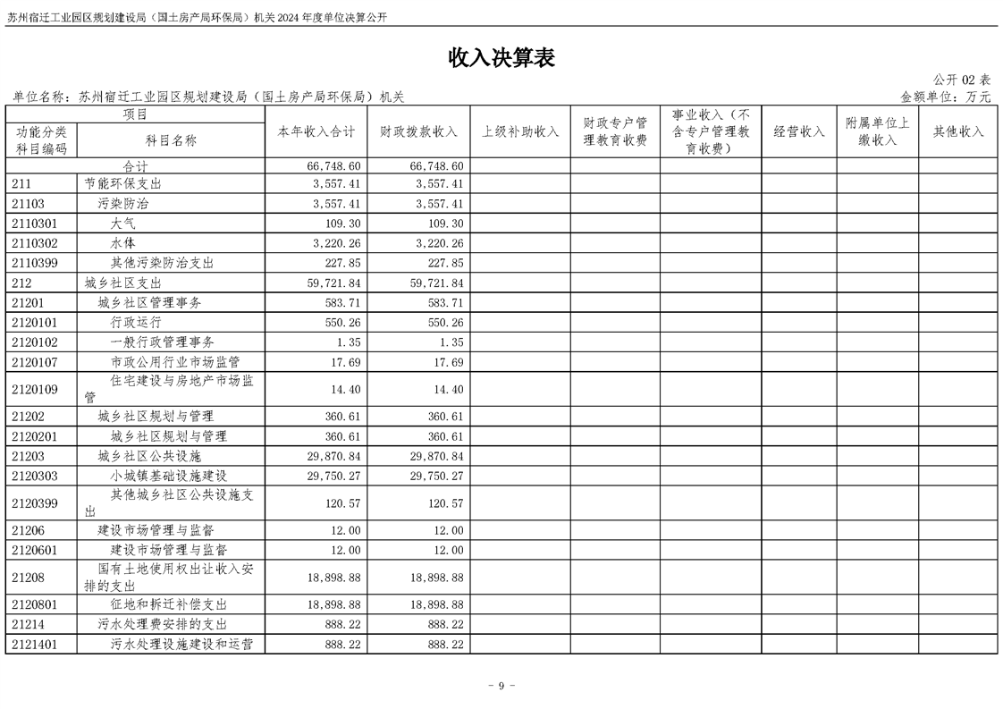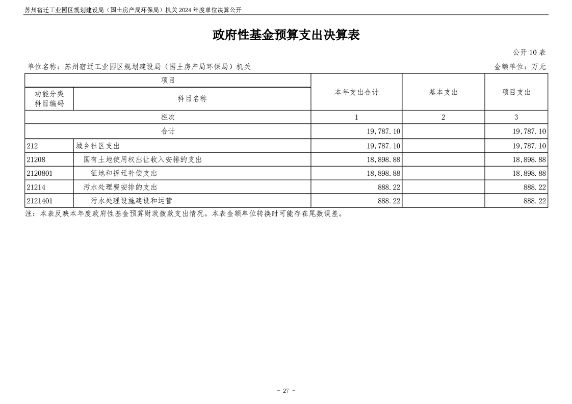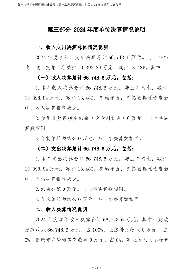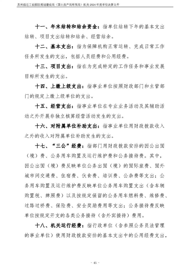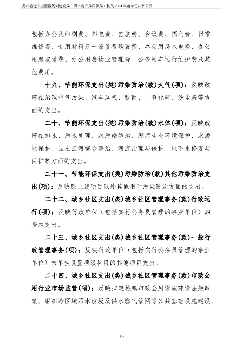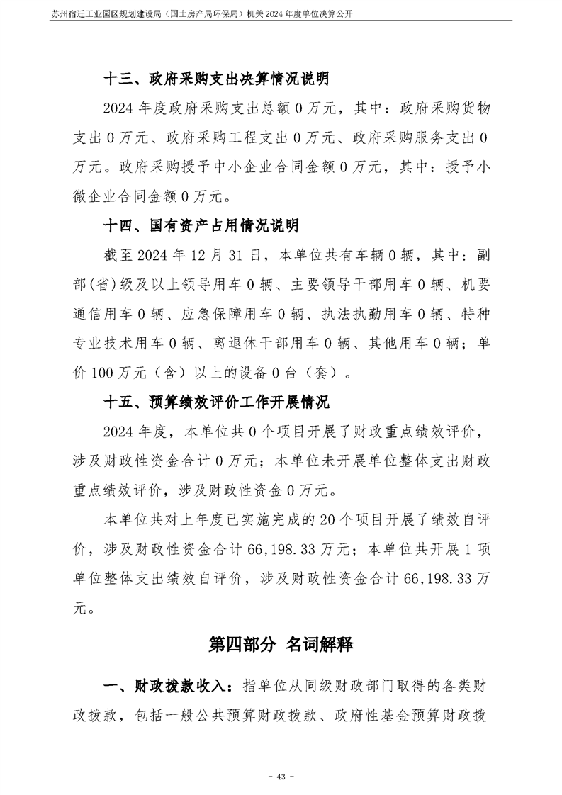 2024年度苏州宿迁工业园区规划建设局(国土房产局环保局)机关单位决算公开