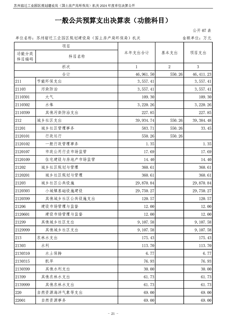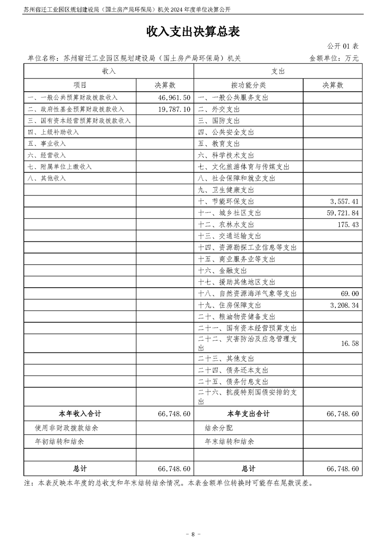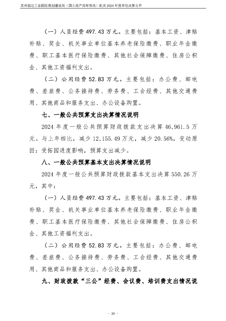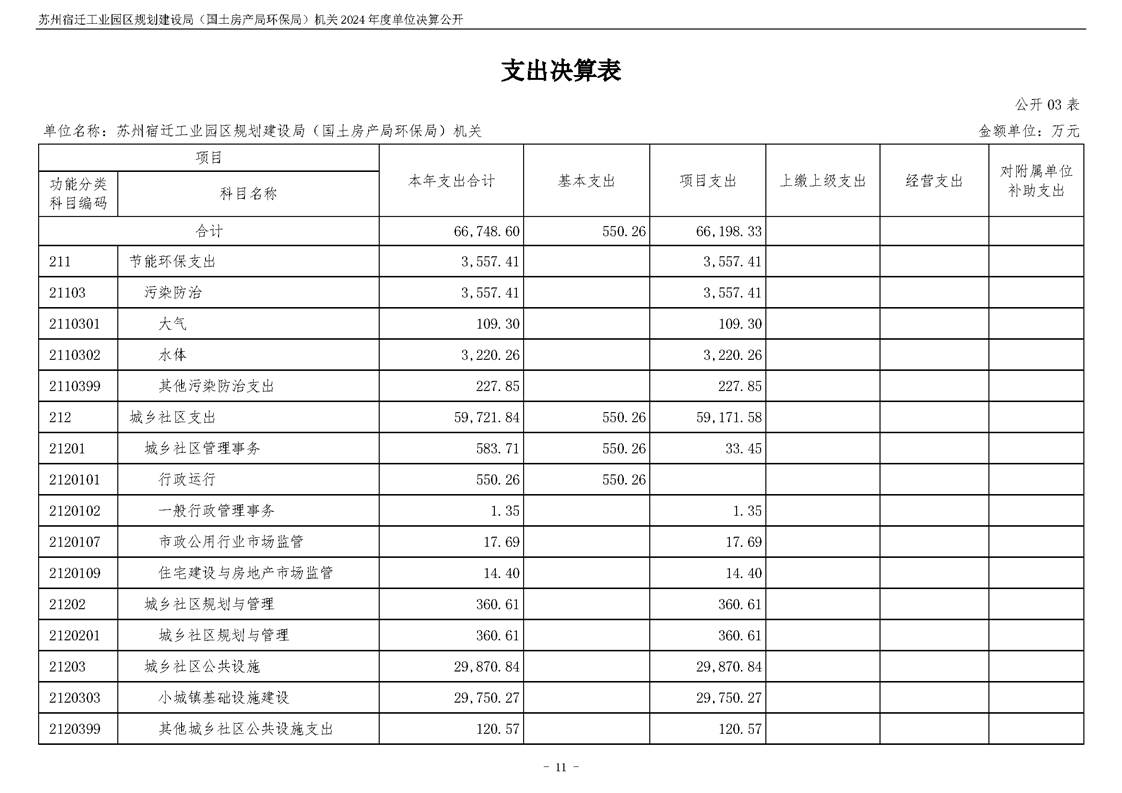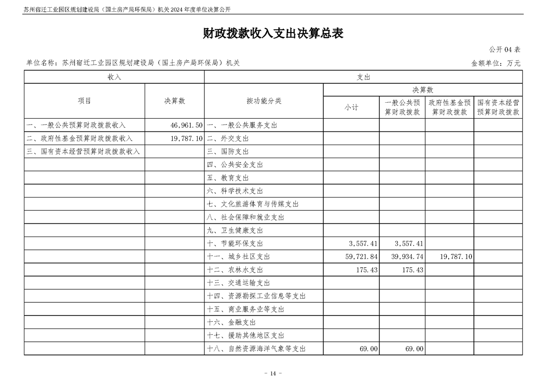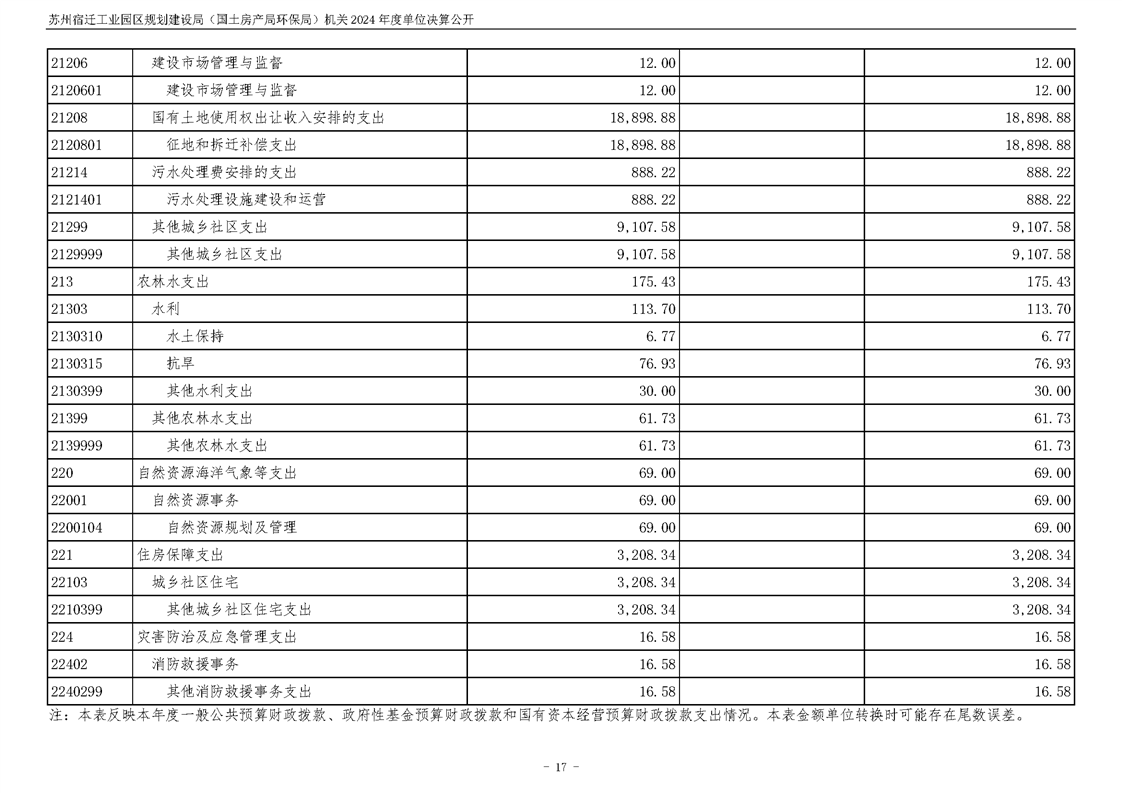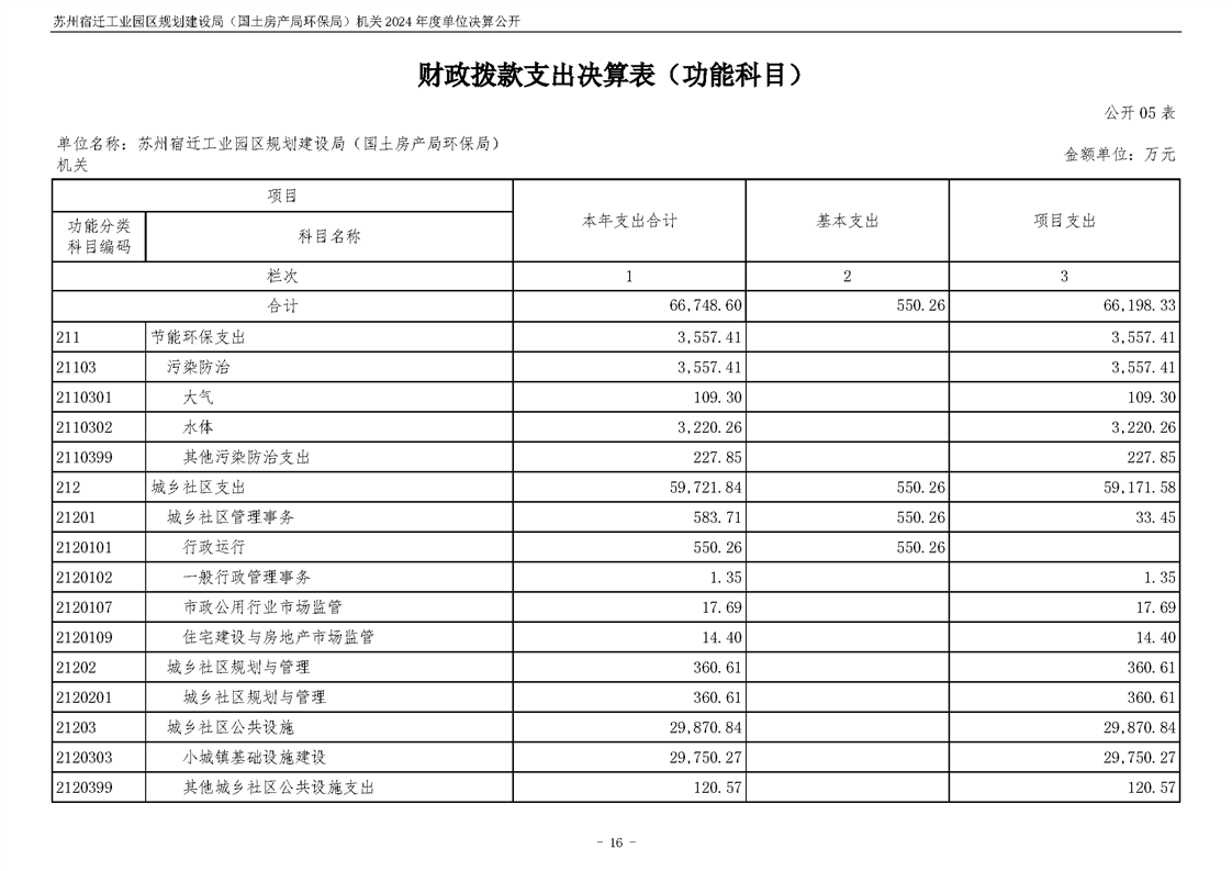 2024年度苏州宿迁工业园区规划建设局(国土房产局环保局)机关单位决算公开
