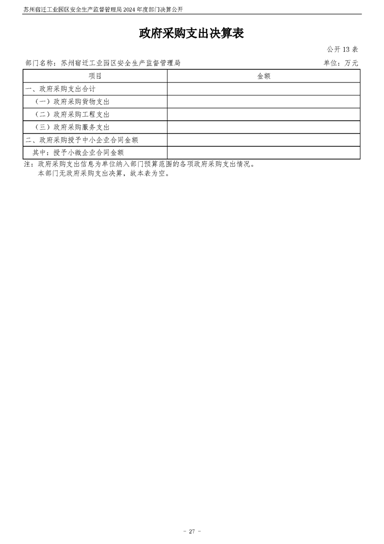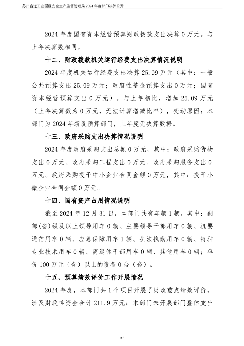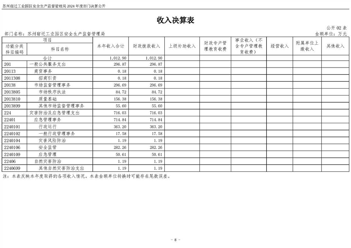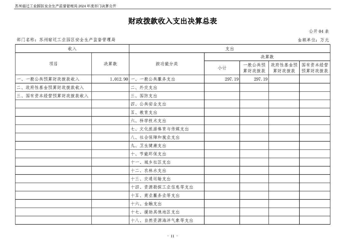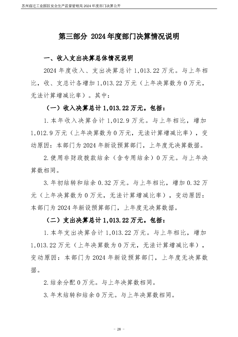 2024年度苏州宿迁工业园区安全生产监督管理局部门决算公开