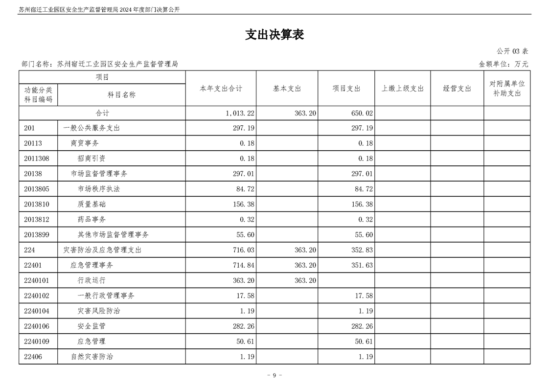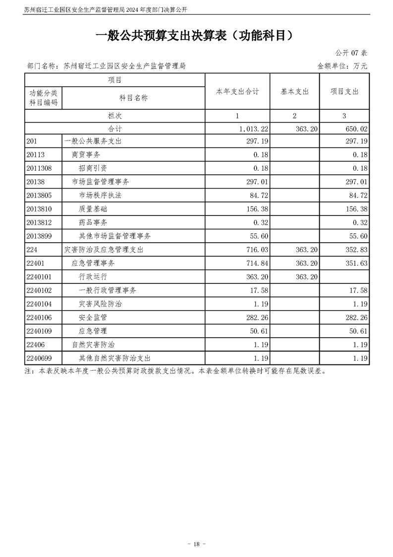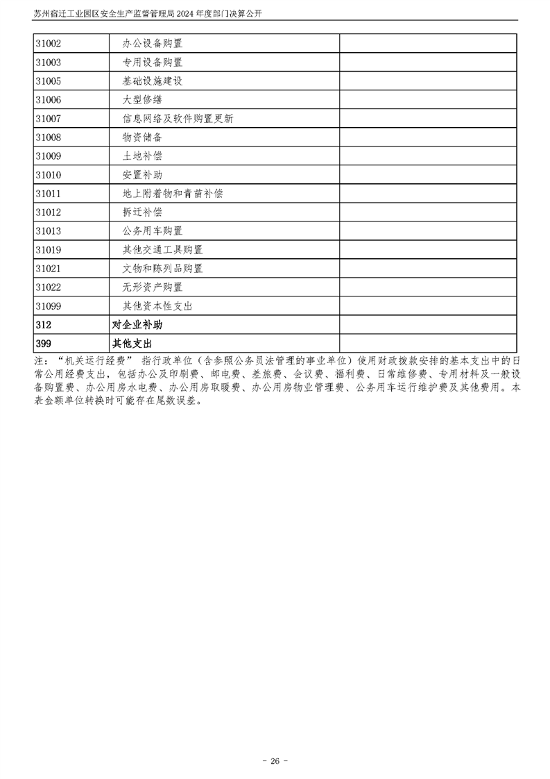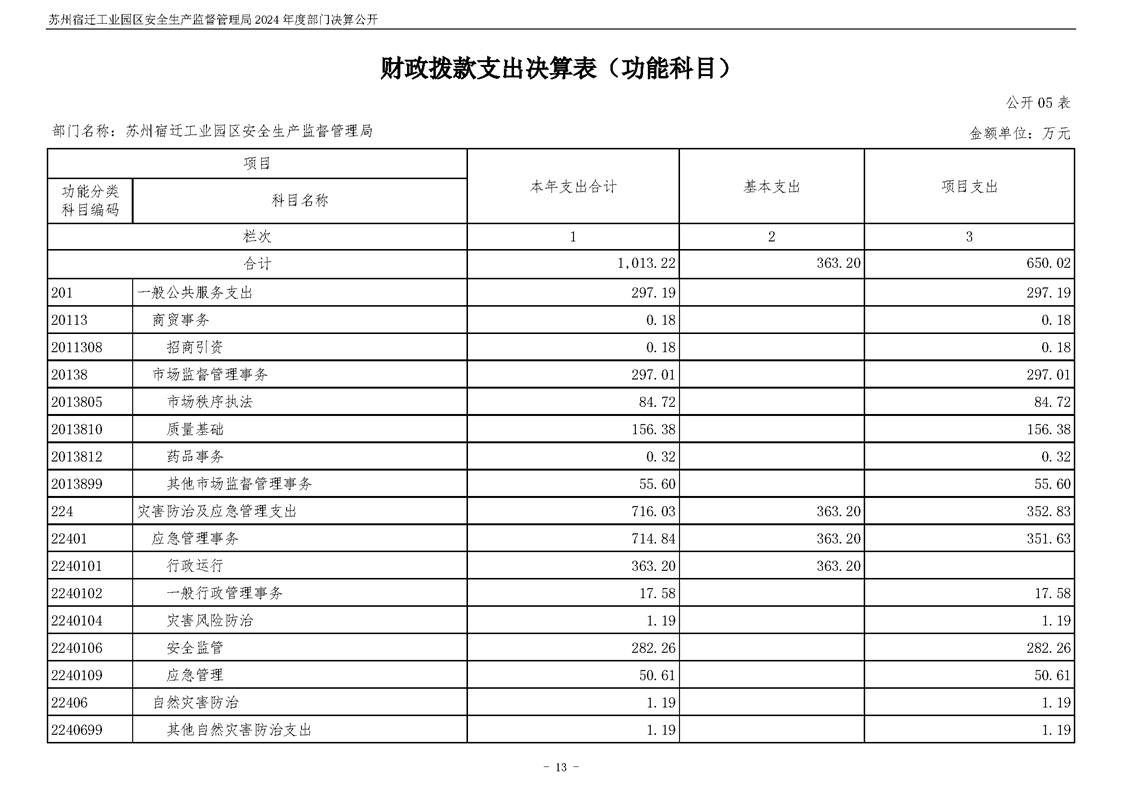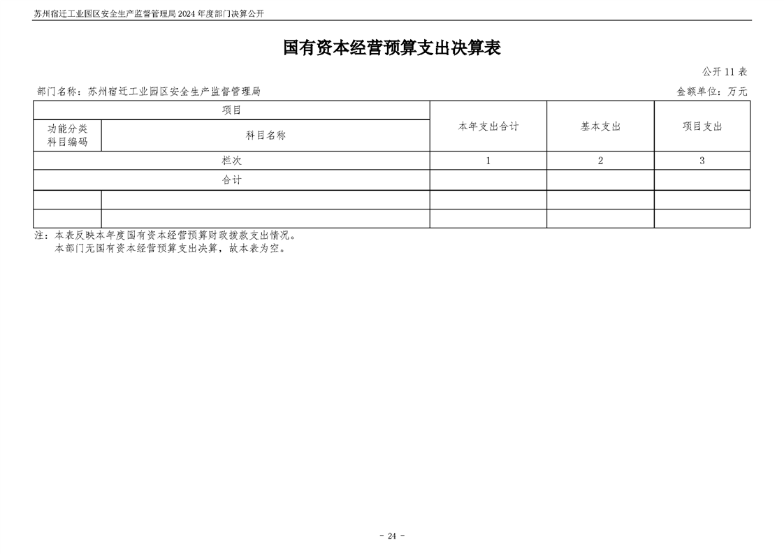 2024年度苏州宿迁工业园区安全生产监督管理局部门决算公开