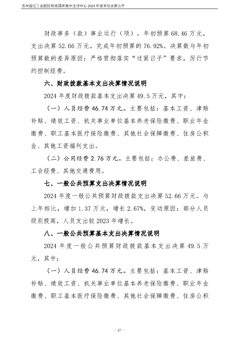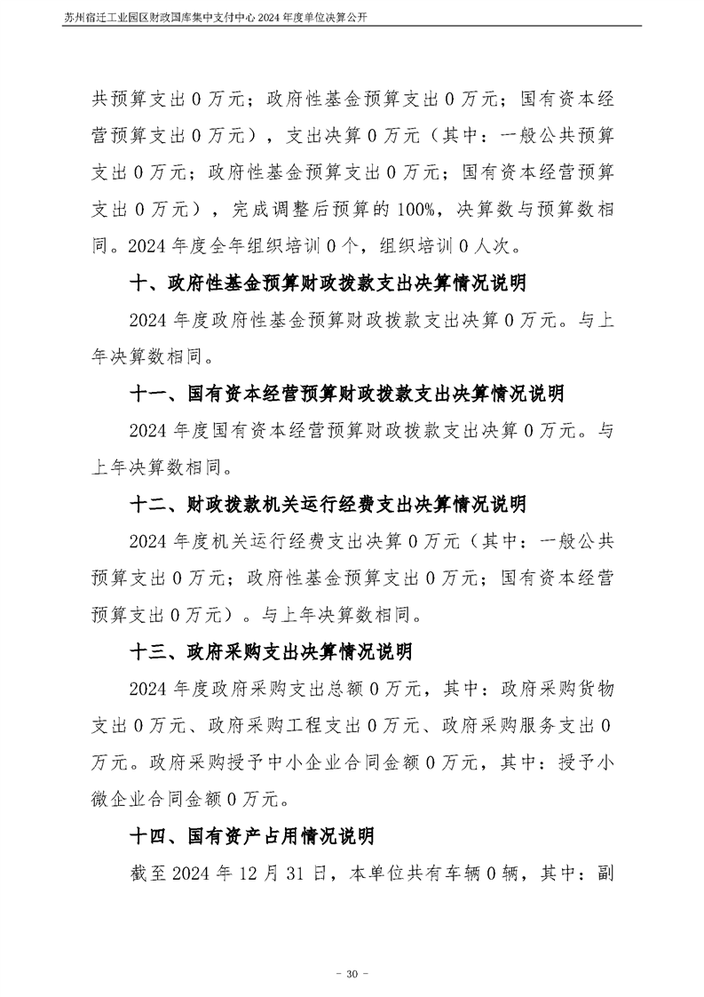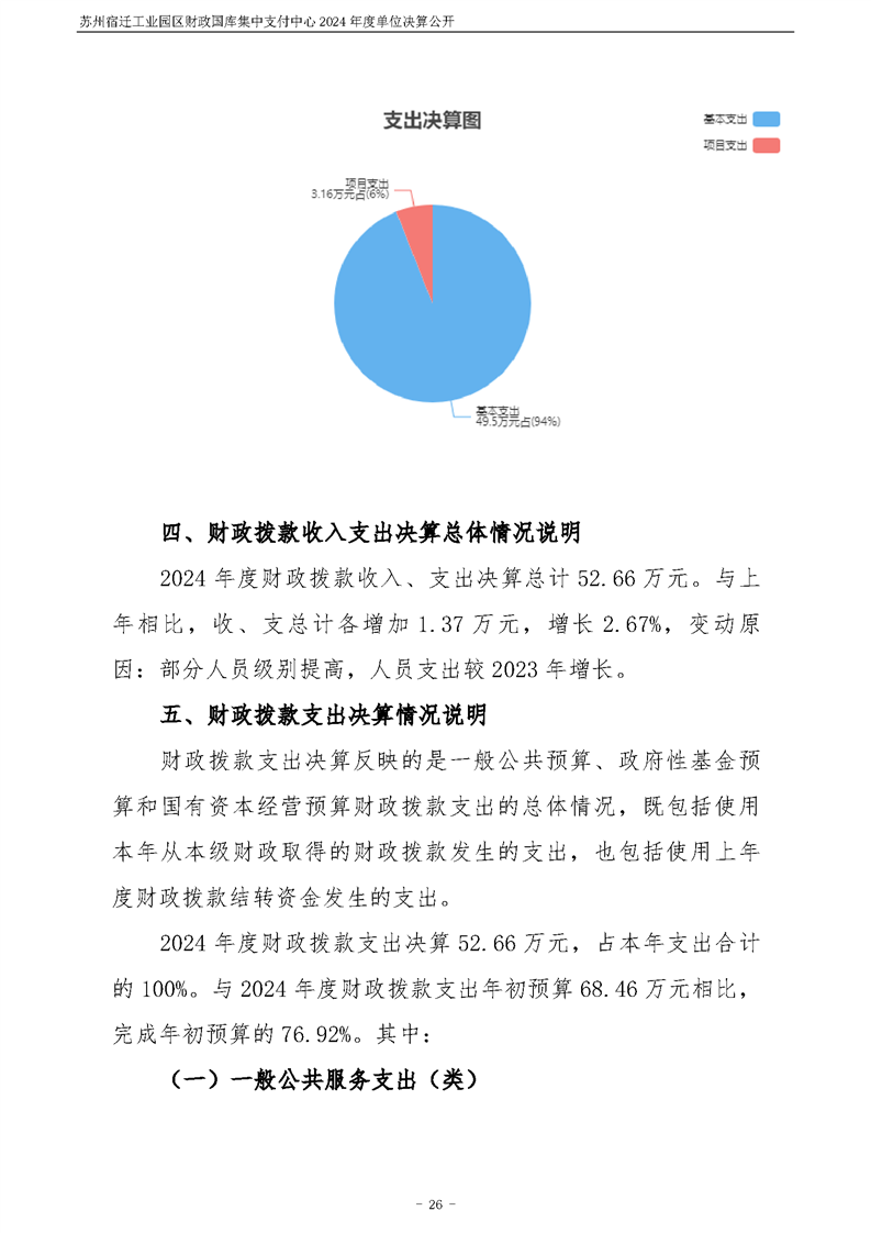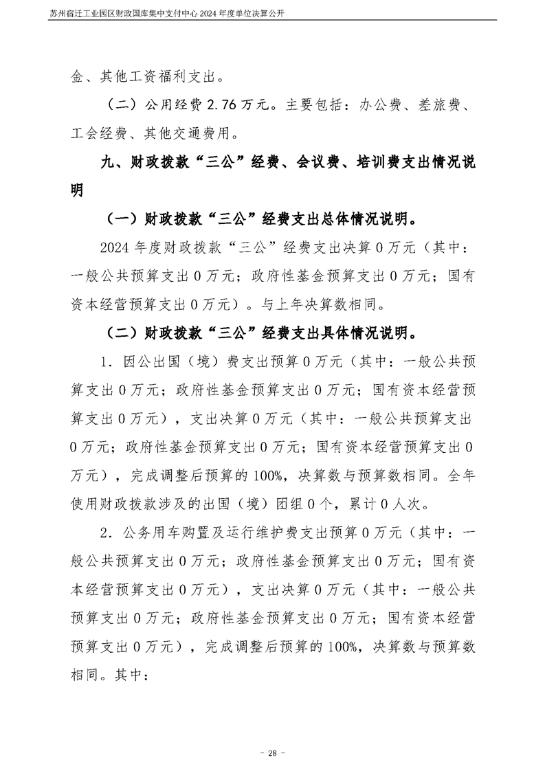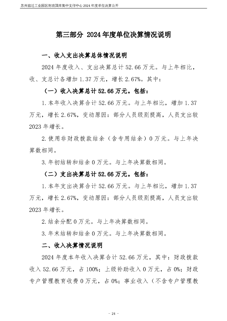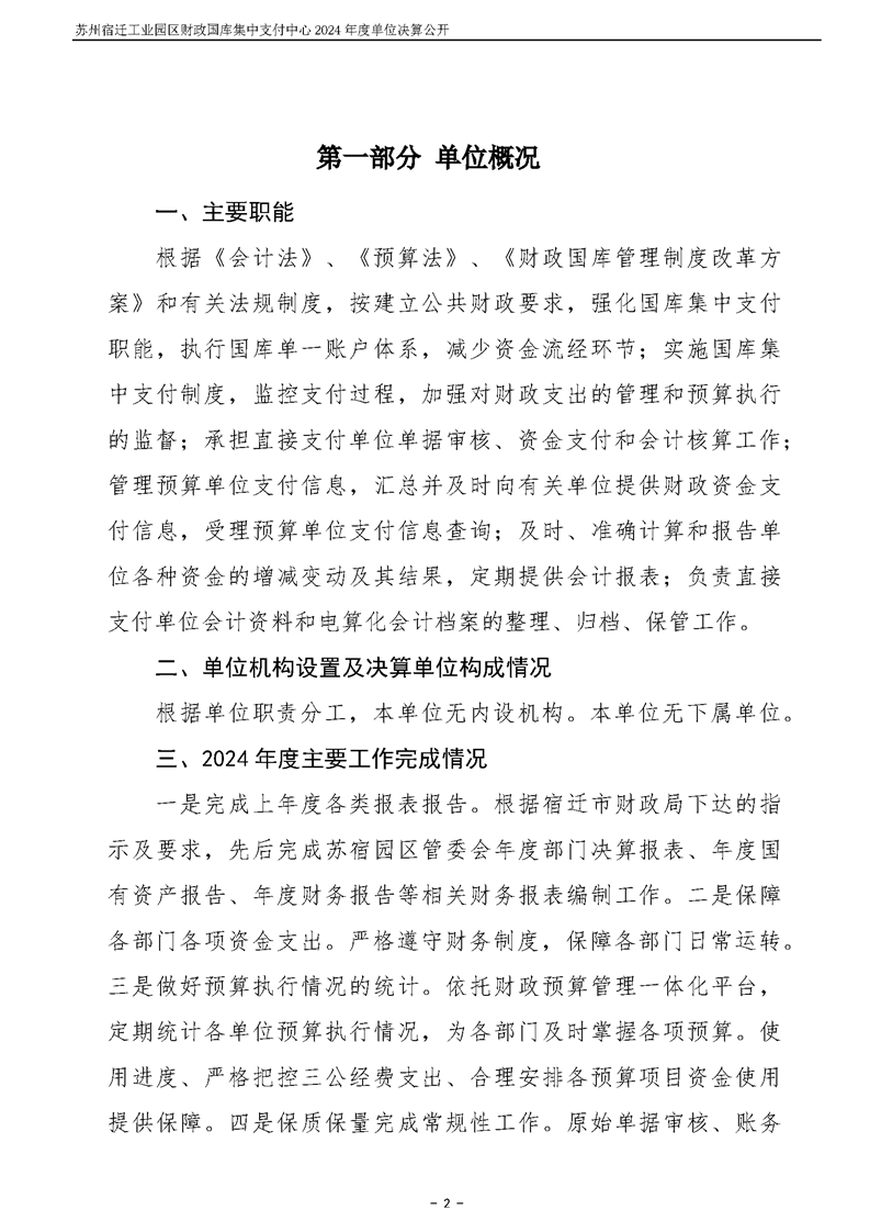 2024年度苏州宿迁工业园区财政国库集中支付中心单位决算公开