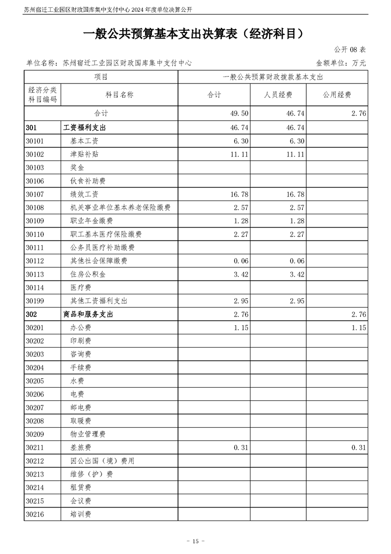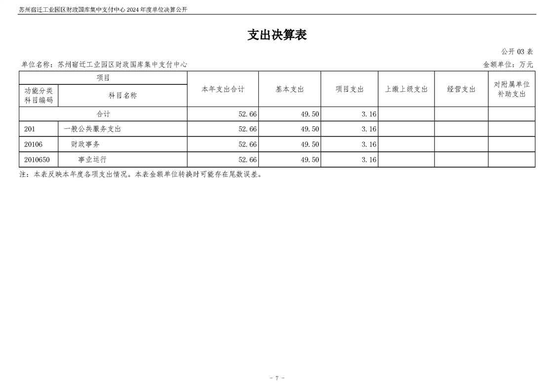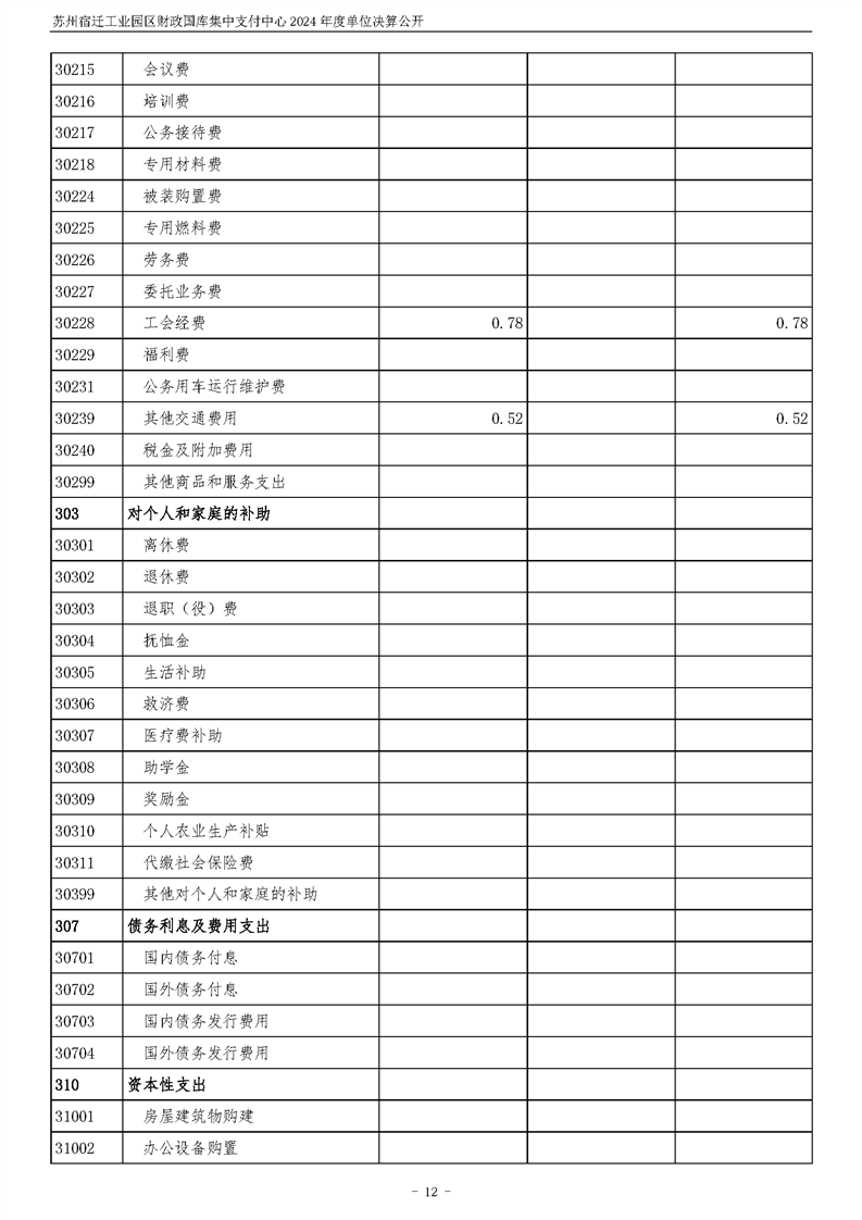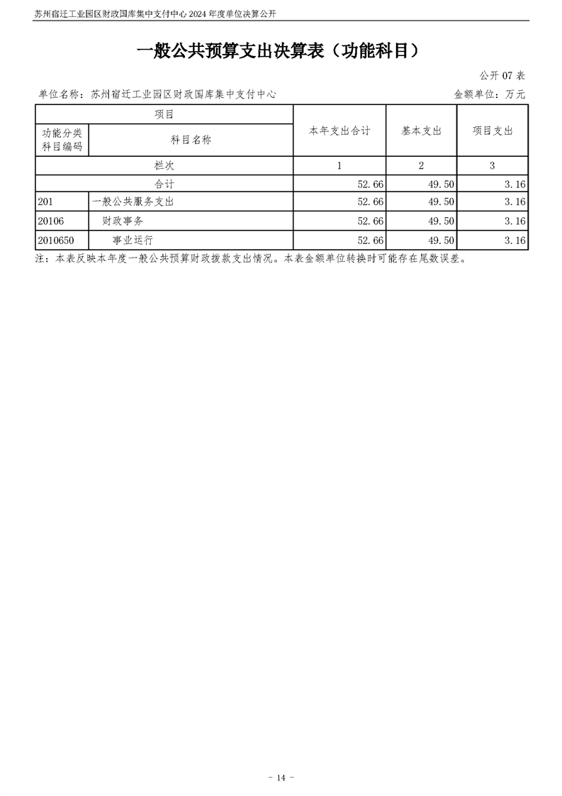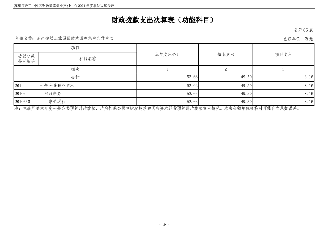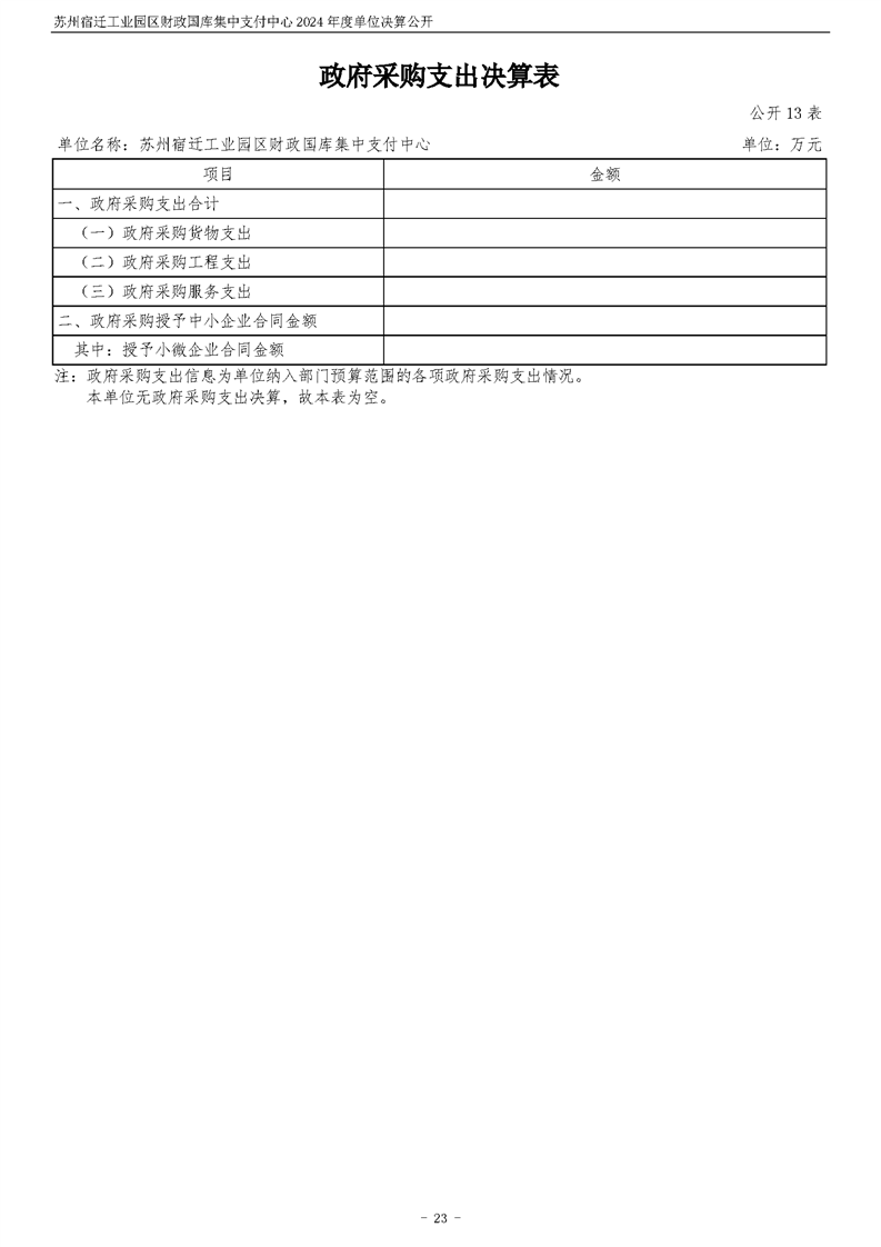 2024年度苏州宿迁工业园区财政国库集中支付中心单位决算公开