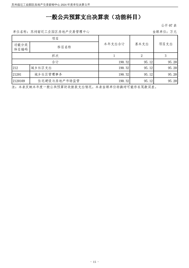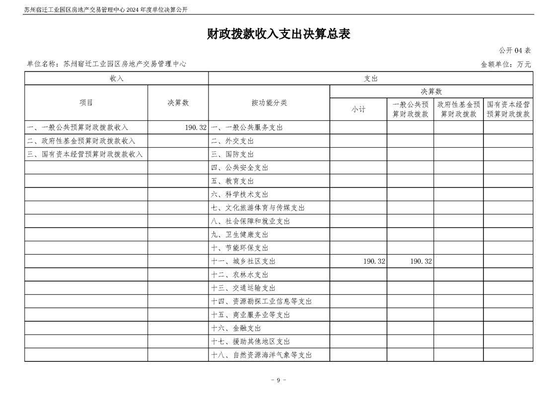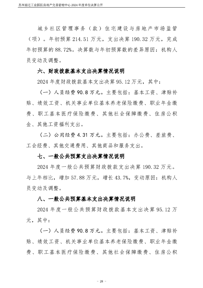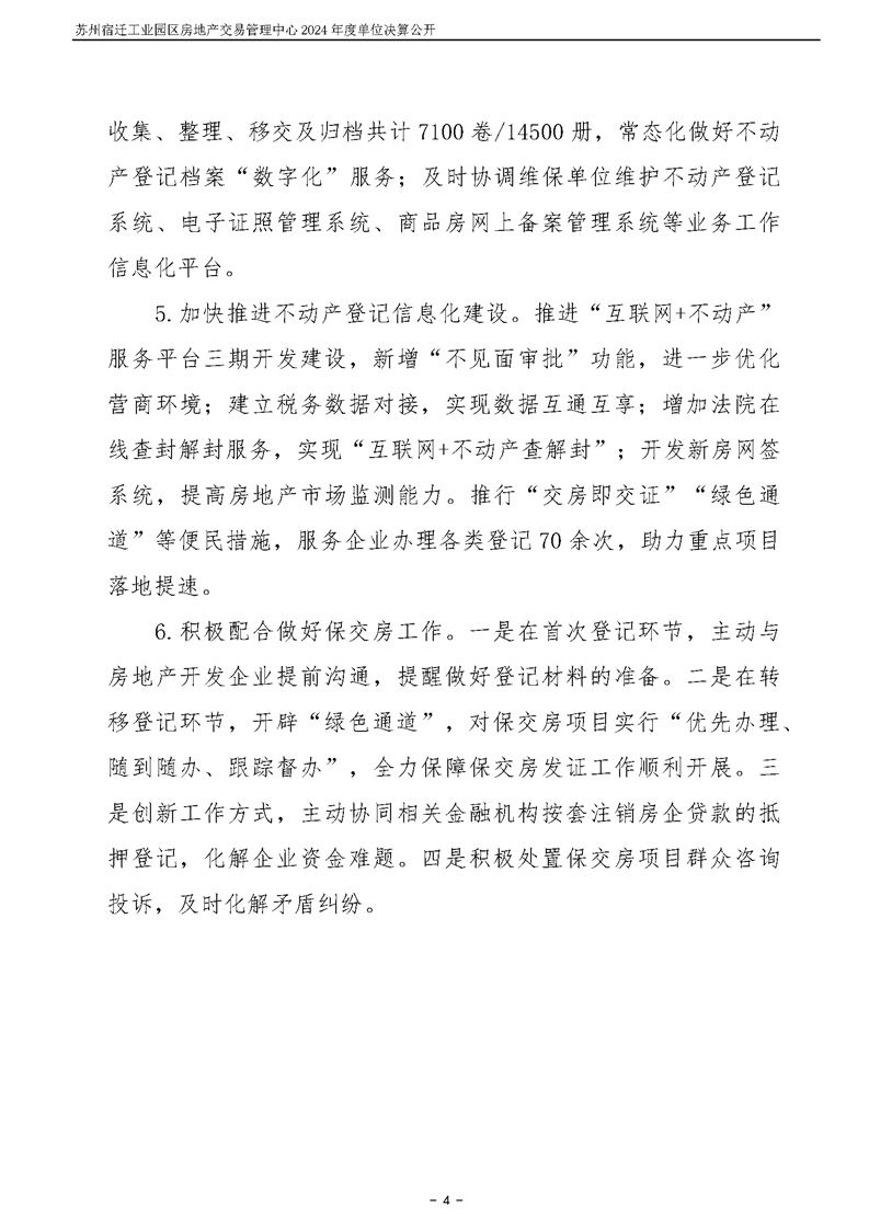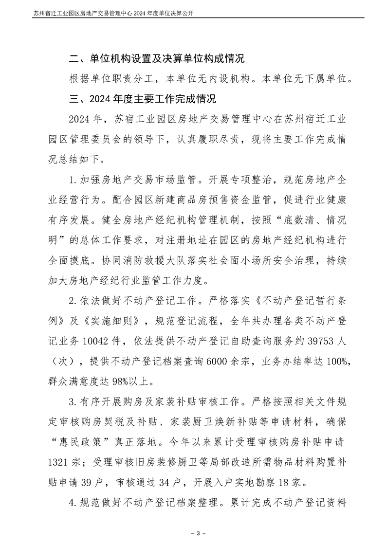 2024年度苏州宿迁工业园区房地产交易管理中心单位决算公开