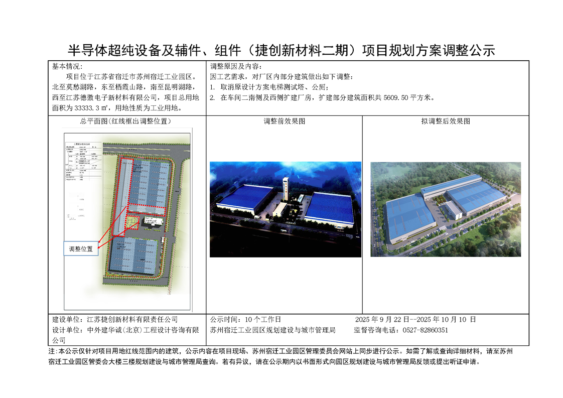 半导体超纯设备及辅件、组件(捷创新材料二期)项目规划方案调整公示